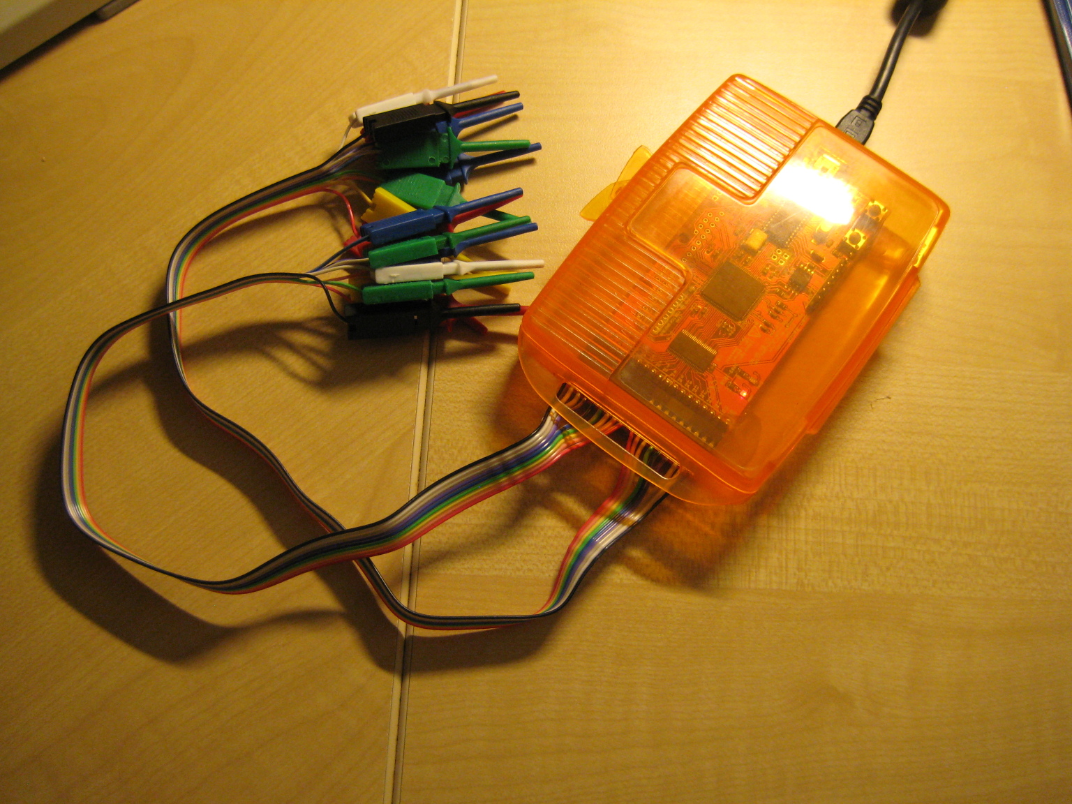 About a year ago I bought an OpenBench Logic Sniffer, an open-source (both hardware