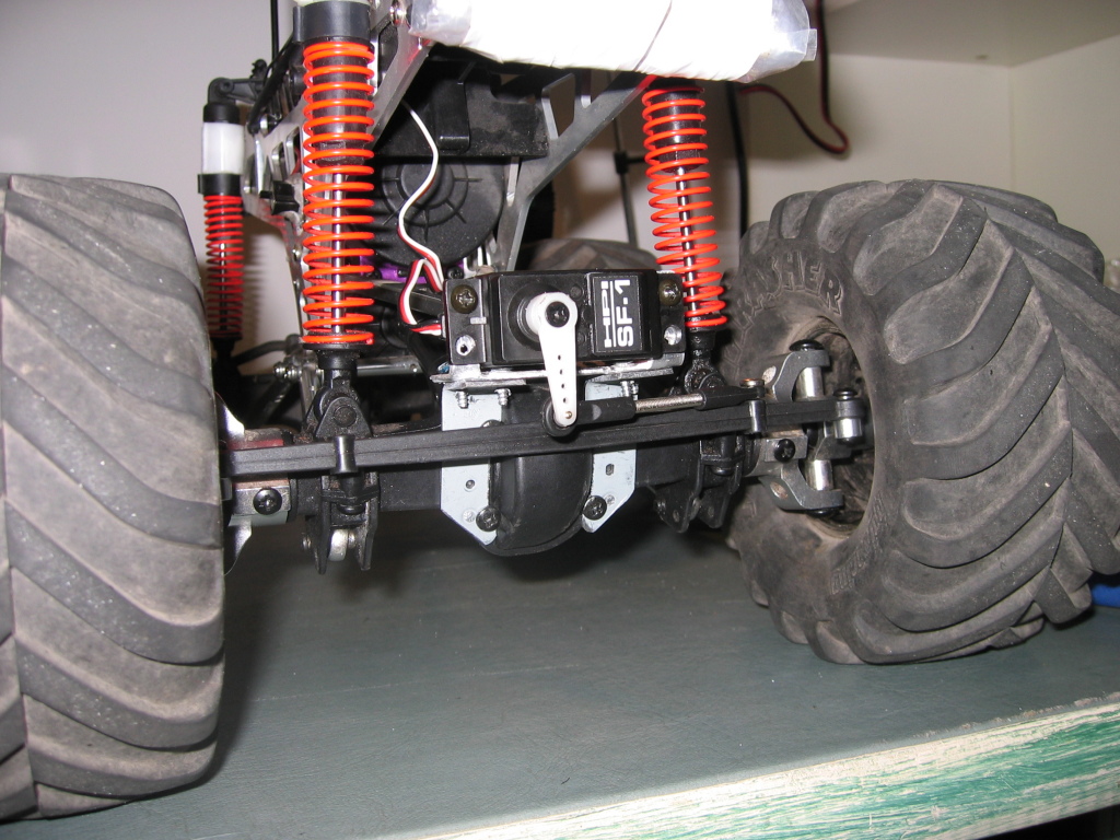 You can see how the servo sticks out a bit, but that is not to be helped: it's either that, mounting the servo a lot higher up or completely changing the upper link mount.